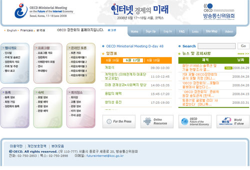 OECD장관회의는 OECD 회원국 장관들이 참가해 IT분야에 대한 논의를 진행하는 행사로 1998년 캐나다 오타와에서 전자상거래를 주제로 개최된 이후 10년 만에 열린다. 지난해 구 정보통신부의 유치로 방통위가 OECD장관회의를 주최하게 됐다.